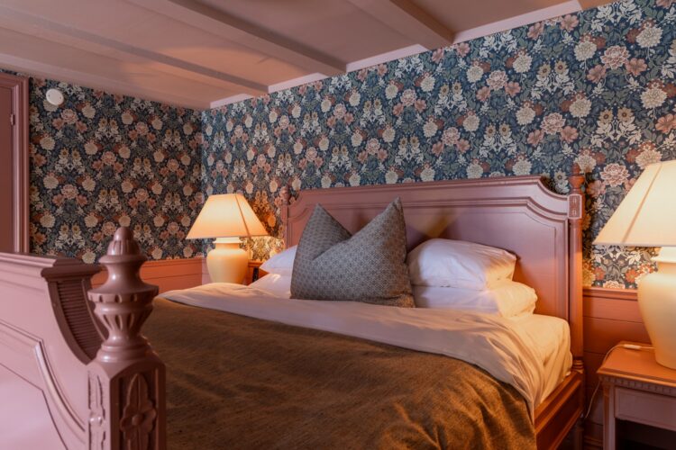 Nyponros har dejlige, jordnære farver og er 35 kvadratmeter stort. Værelset har en 180 cm bred seng, hvor du kan sove dejligt og komfortabelt. Der
